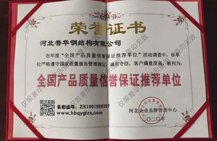质量荣誉证书