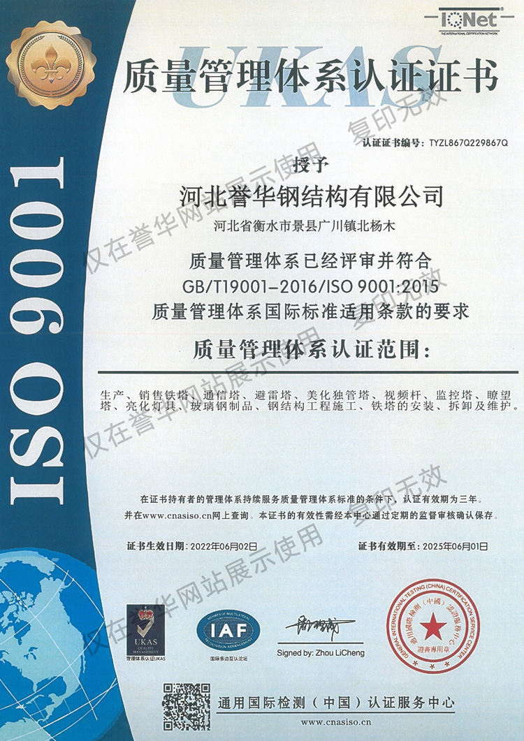 质量管理体系证书