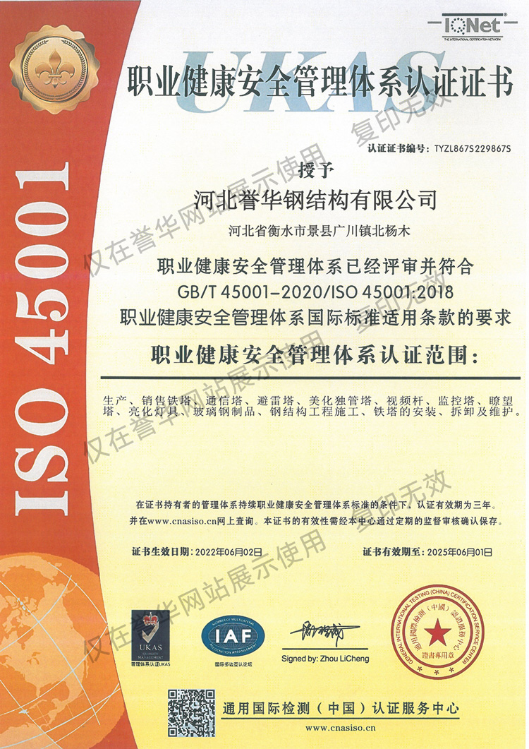 职业健康体系证书